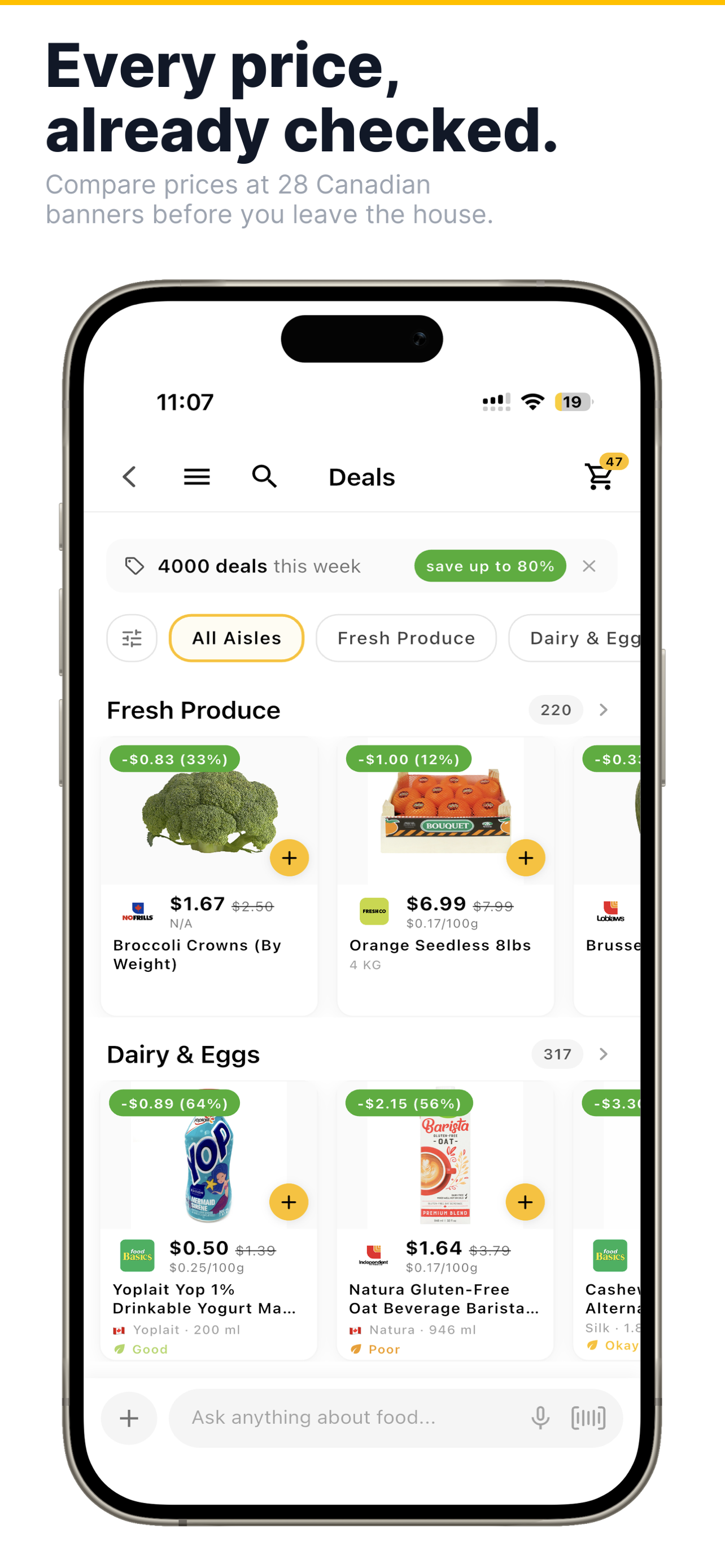 !Every price, already checked — compare prices at 28 Canadian banners before you leave the house