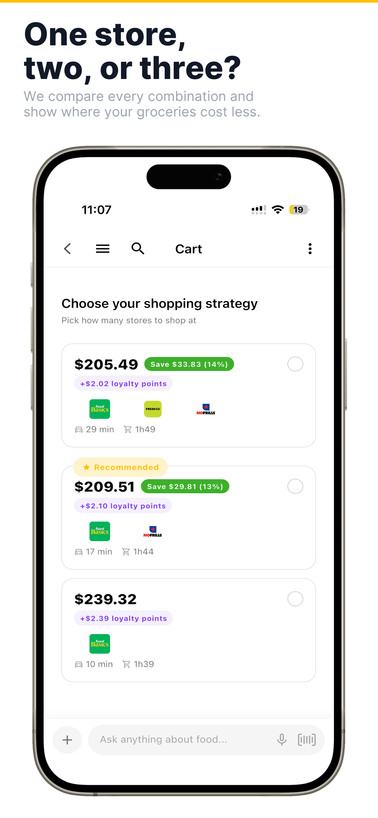 !One store, two, or three? We compare every combination and show where your groceries cost less