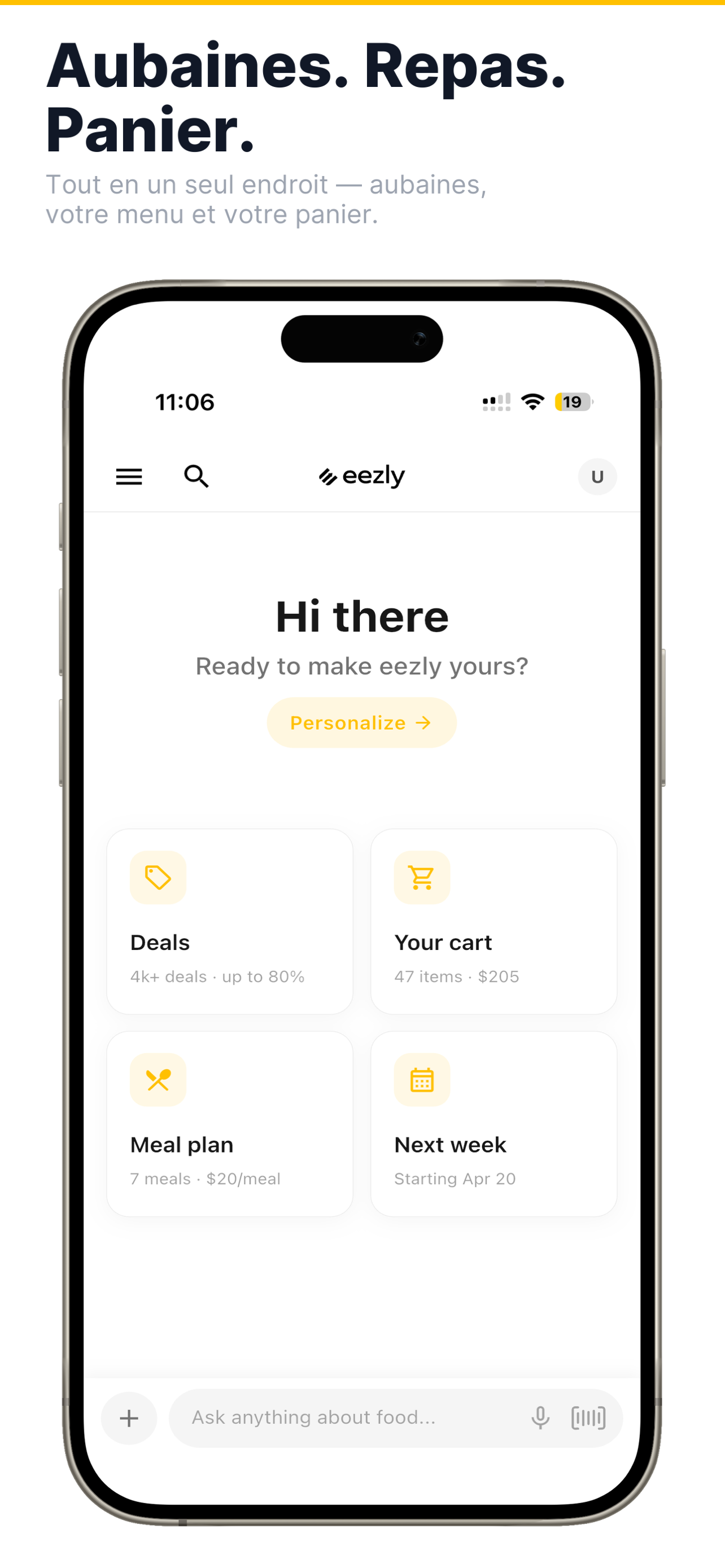!eezly 3.0 — Aubaines. Repas. Panier. Tout au même endroit.