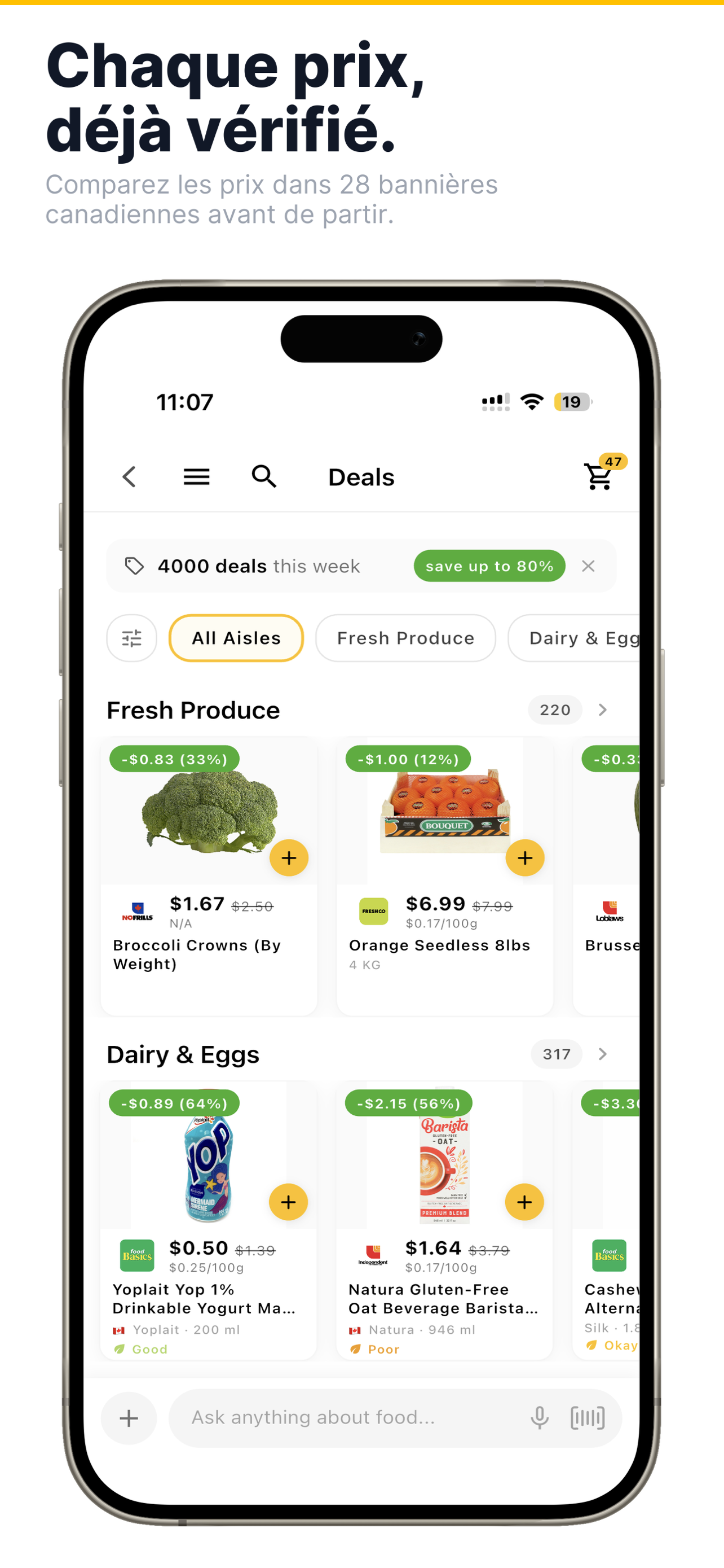 L'écart que ça comble est plus grand que la plupart des gens le réalisent. Le même article peut coûter de 30 à 40 % de plus dans une bannière canadienne qu'une autre la même semaine, et la plupart des gens ne s'en rendent jamais compte avant de rentrer à la maison. eezly 3.0 comble cet écart avant même que vous quittiez la maison.