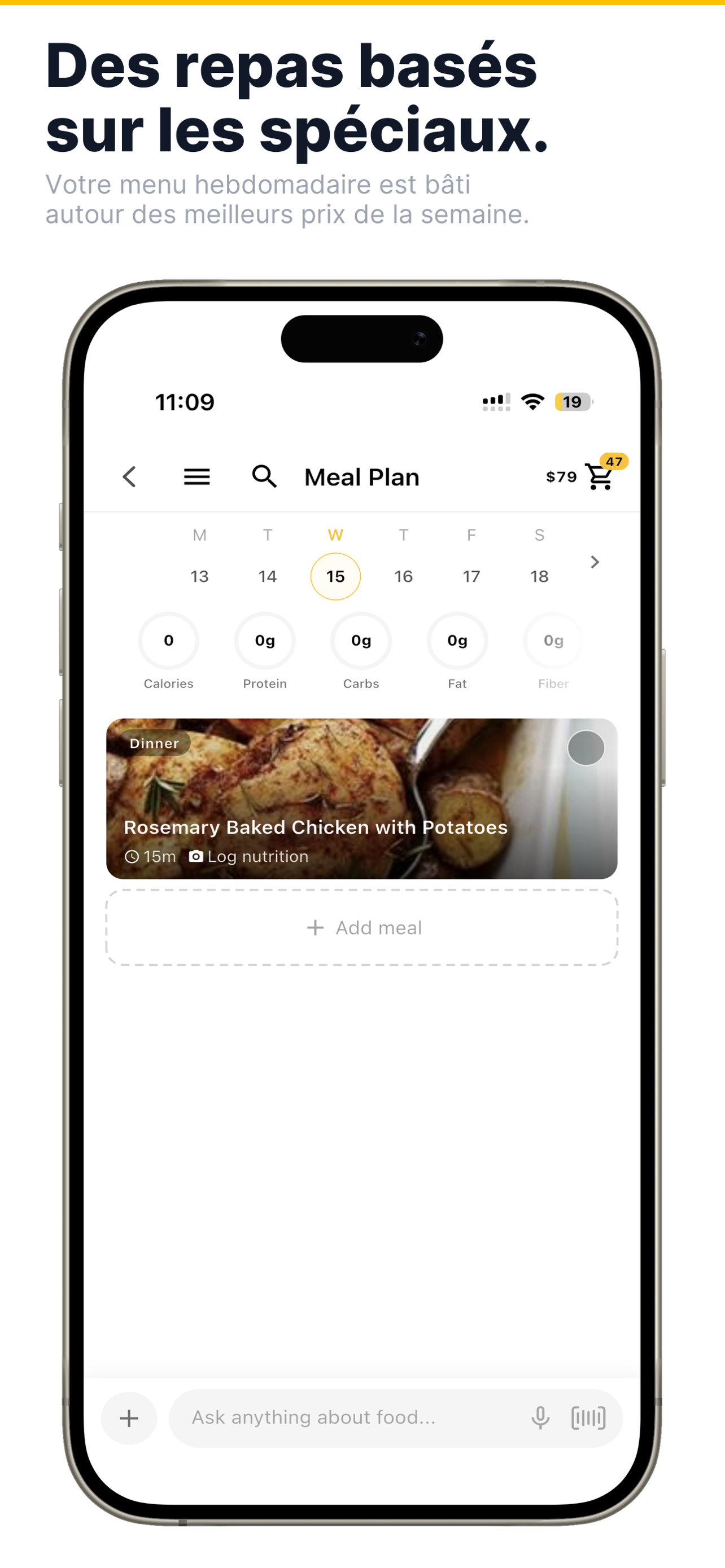 Quand les hauts de cuisse de poulet sont à 4,99 $ chez Maxi et à 7,49 $ chez IGA cette semaine, votre plan de repas est bâti autour du poulet à 4,99 $. Quand ça bascule la semaine suivante, le plan s'ajuste. Le plan de repas reste exact parce que les prix sur lesquels il s'appuie reflètent ce que les magasins demandent en ce moment.
